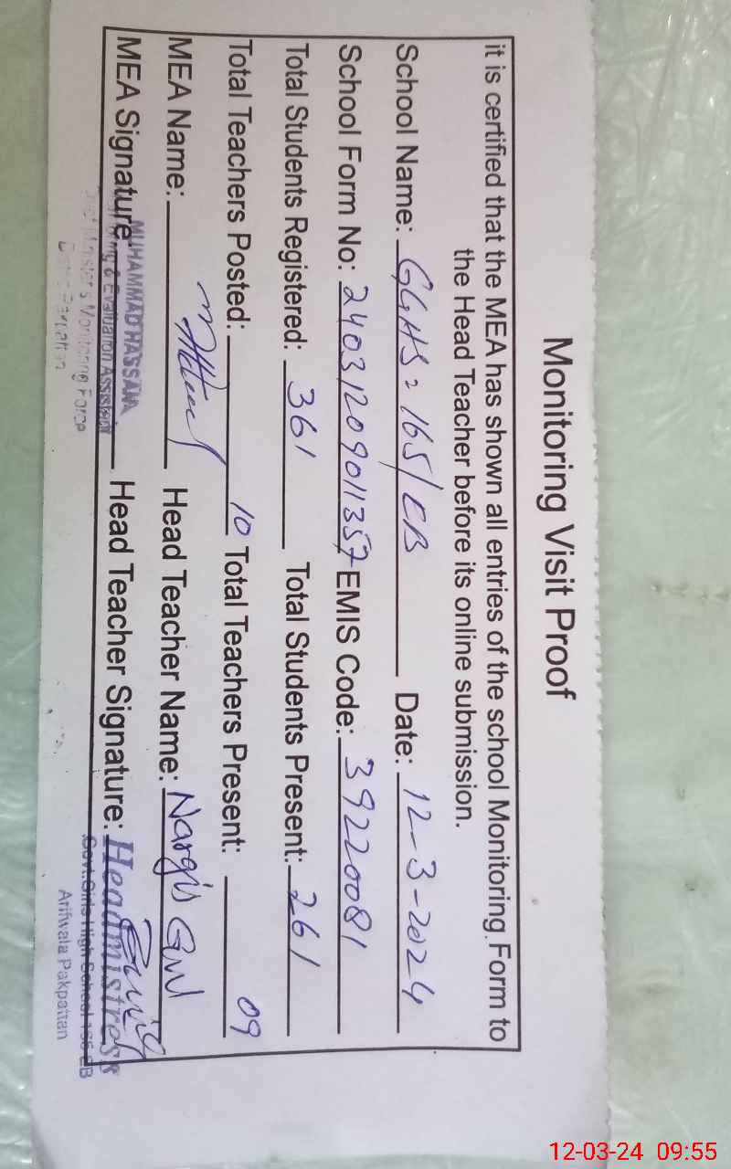 | EMIS Code: 39220081 | Name of School: GGHS 165 EB P/O 163 EB | |||