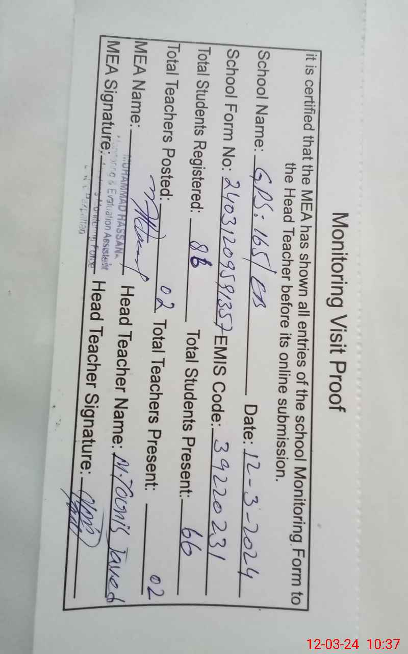 | EMIS Code: 39220231 | Name of School: GPS 165 EB P.O 163 E.B ARIF WALA | |||