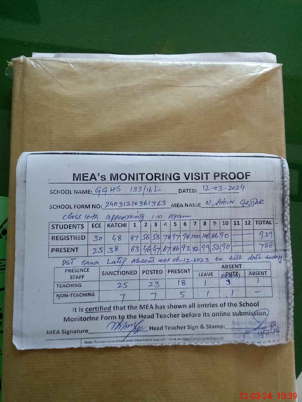 | EMIS Code: 36430041 | Name of School: GGHS 133/16-L, MIAN CHANNU | |||