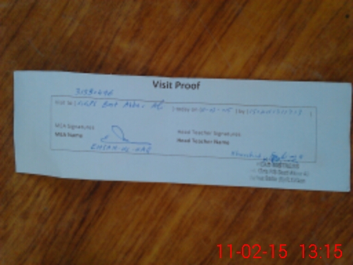 | Attendance Register | Head Teacher | MEA with School | Visit Proof |
