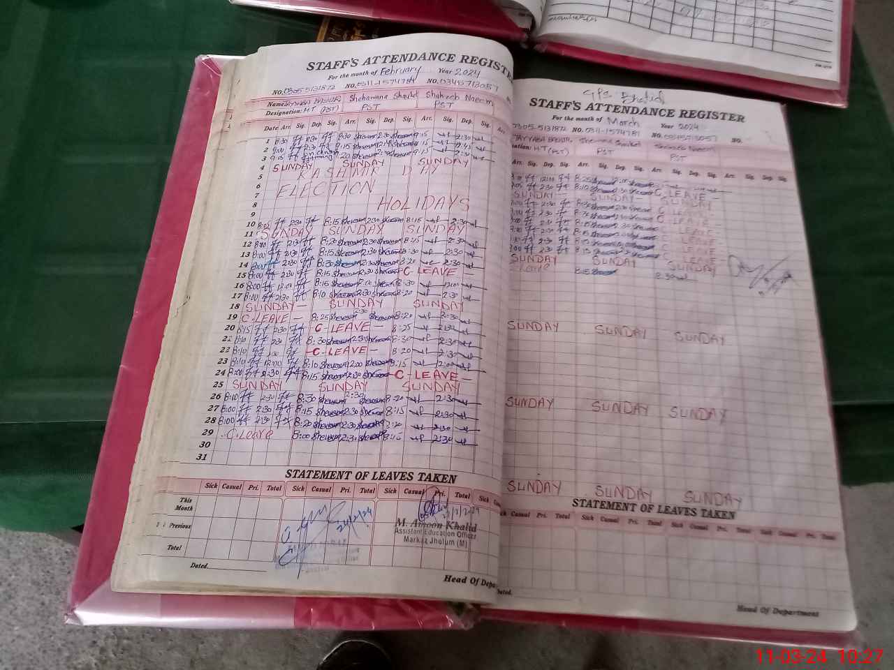| 42**** | Ta**** Ba**** | 1 | 2 | 0 | 0 | 0 | 0 | 0 | 0 | 0 | 2 | Absent (Un-Authorized) | |