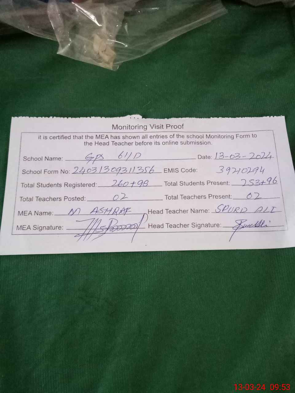 | EMIS Code: 39210294 | Name of School: GPS 61/D | |||