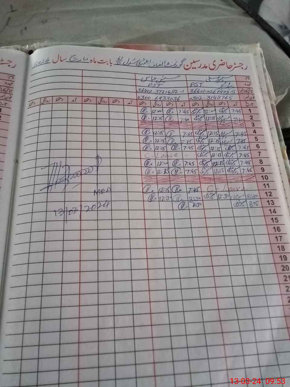 | Name: Sp**** Al**** Designation: (School Headmaster's/Headmistress's) PST Phone/Cell Number: 03**** |