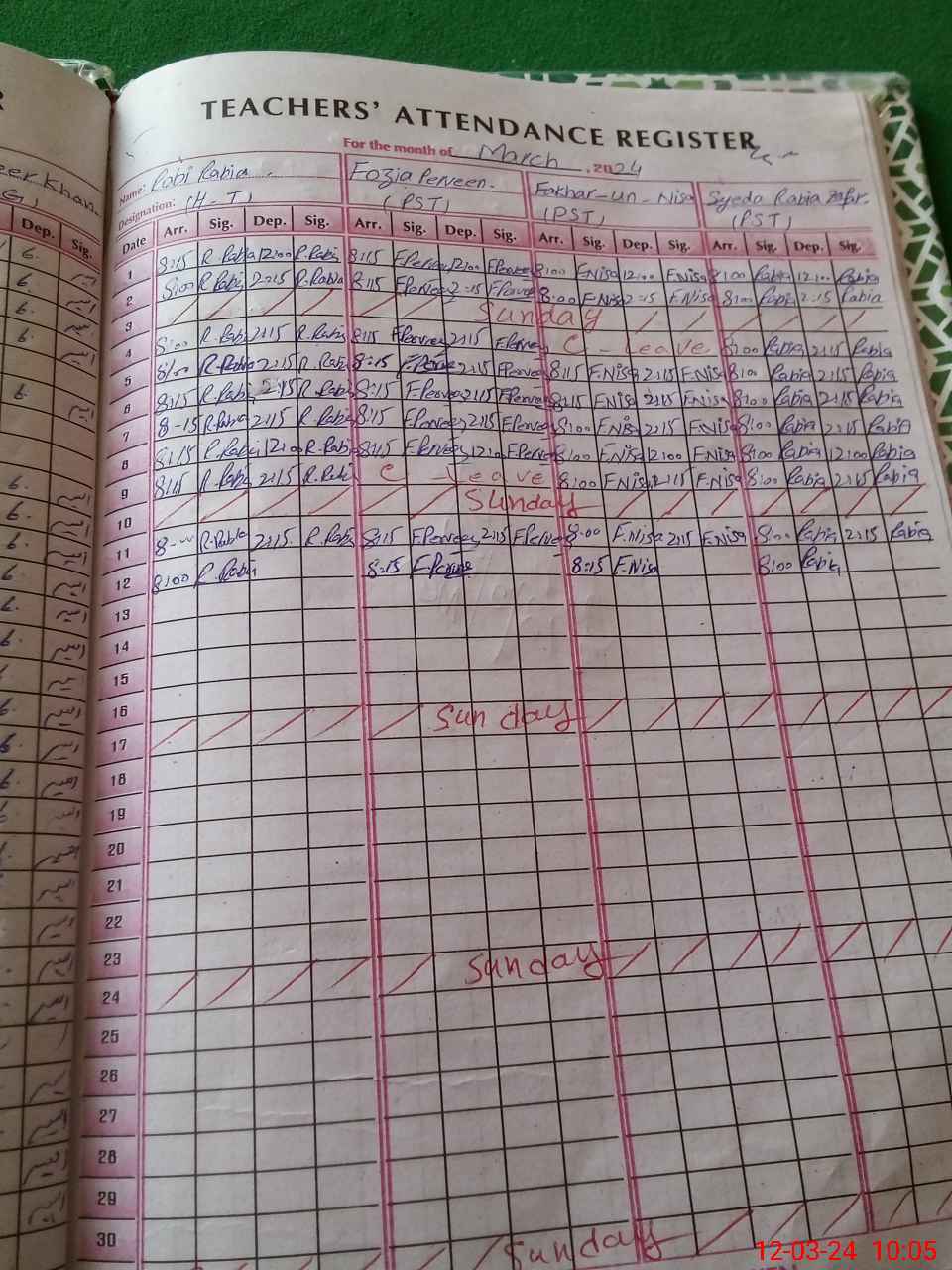 | CNIC | Full Name | Designation | R/C | Absence During Last Calender Month |