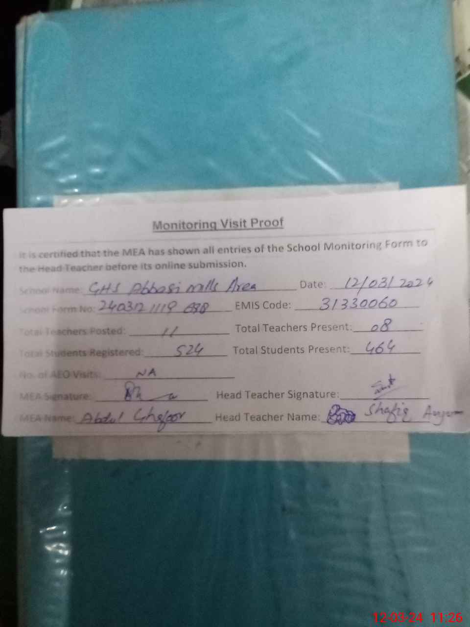 | EMIS Code: 31330060 | Name of School: GHS MC ABBASI MILLS AREA | |||