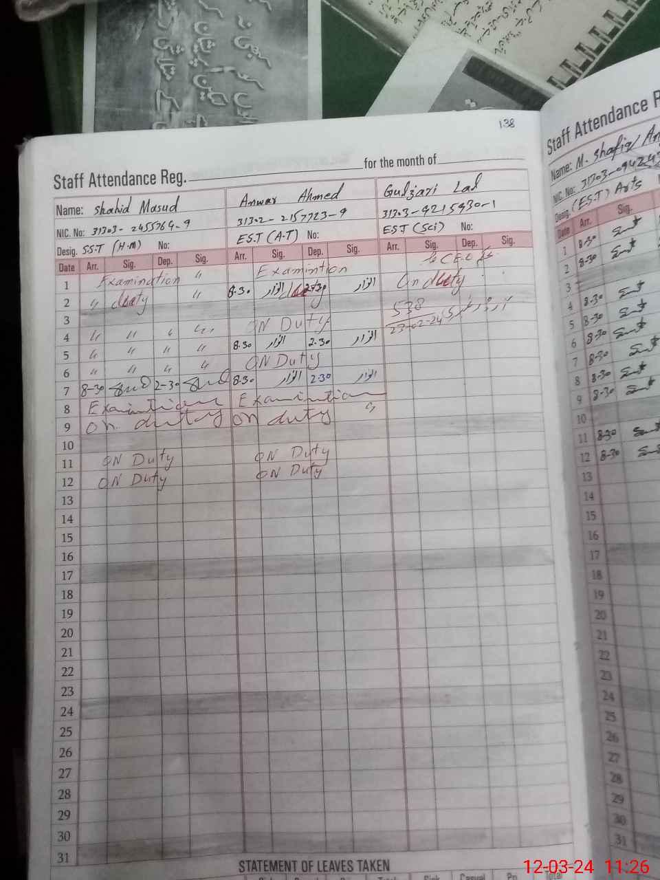 | 31**** | Sh**** Ma**** | SST | Regular | 0 | 0 | 0 | 0 | 0 | 0 | 0 | 0 | 0 | Exam Duty |