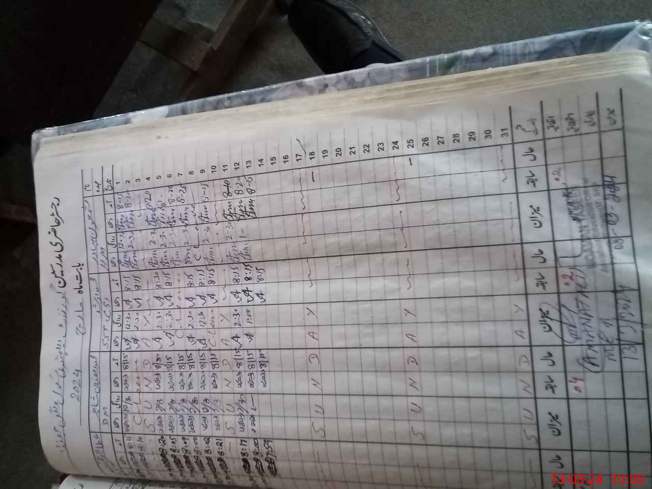| CNIC | Full Name | Designation | R/C | Absence During Last Calender Month |