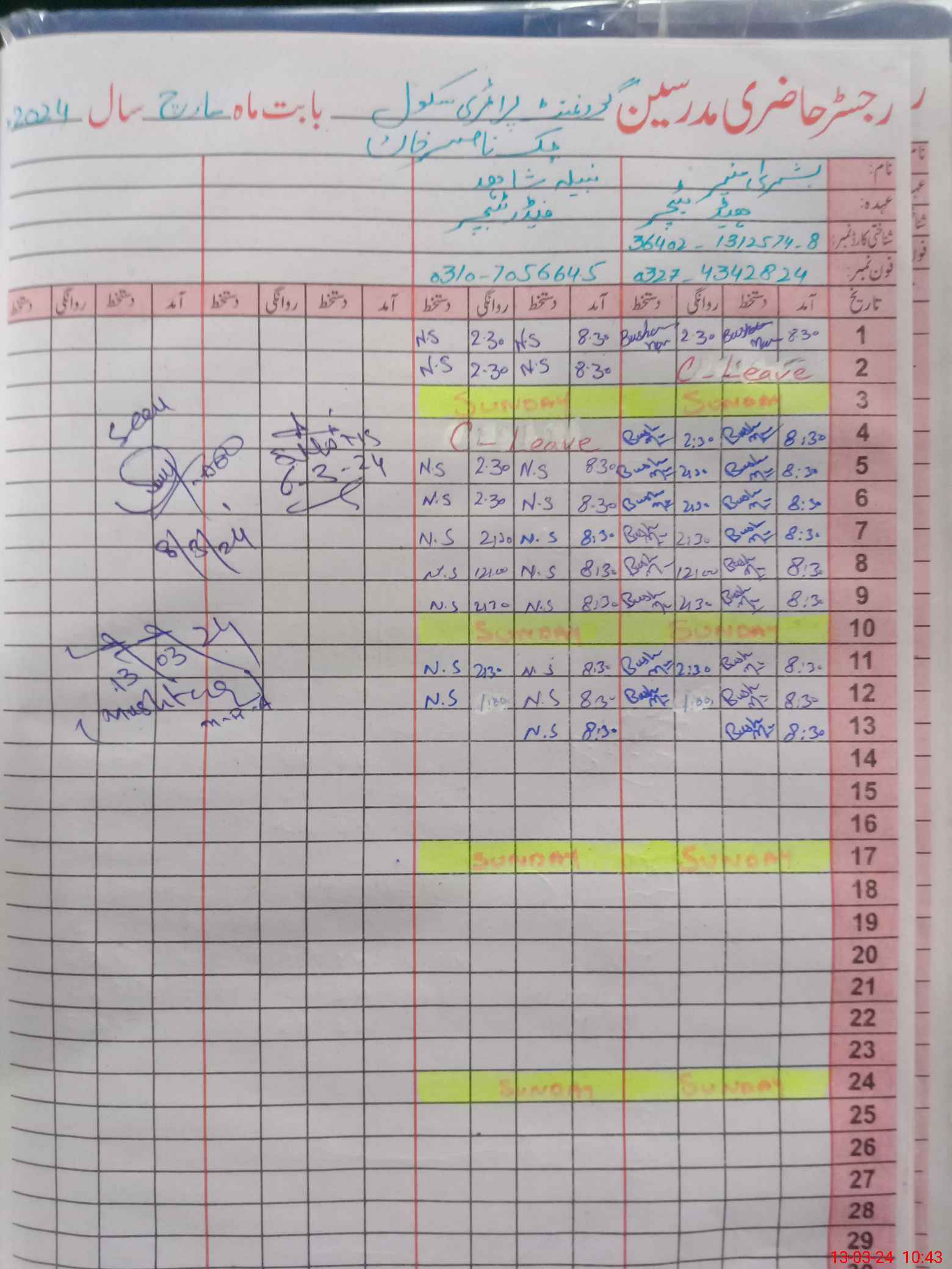 | Name: BU**** MU**** Designation: (School Headmaster's/Headmistress's) PST Phone/Cell Number: 03**** |
