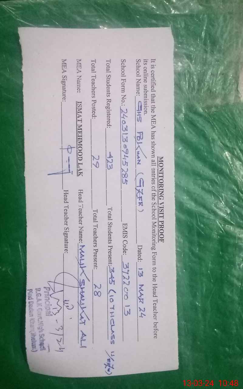 | EMIS Code: 37220013 | Name of School: GHS RGAK PIND DADAN KHAN | |||