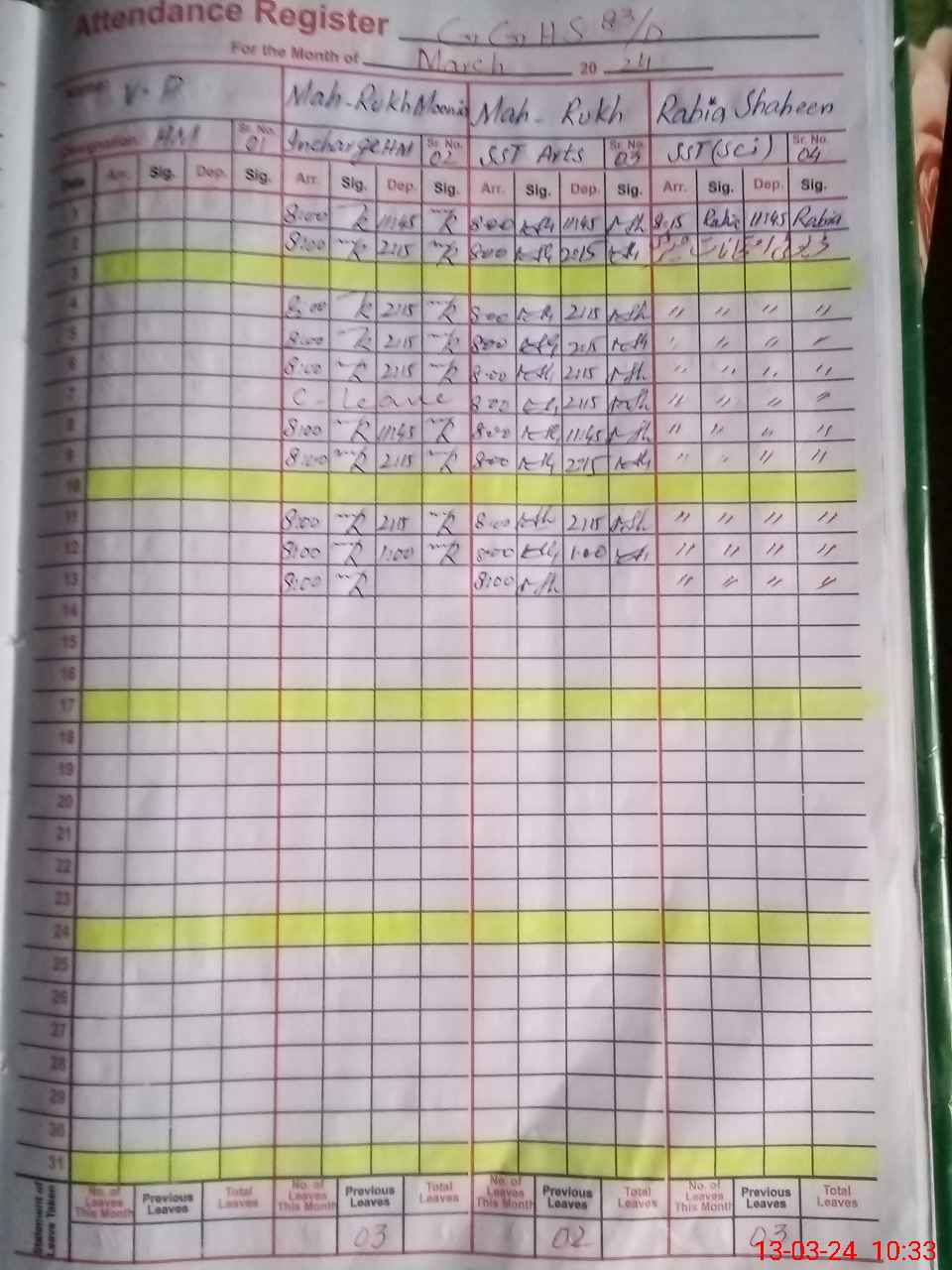 | 36**** | Ra**** Sh**** | Regular | 0 | 13 | 0 | 0 | 0 | 0 | 0 | 0 | 0 | Exam Duty | |