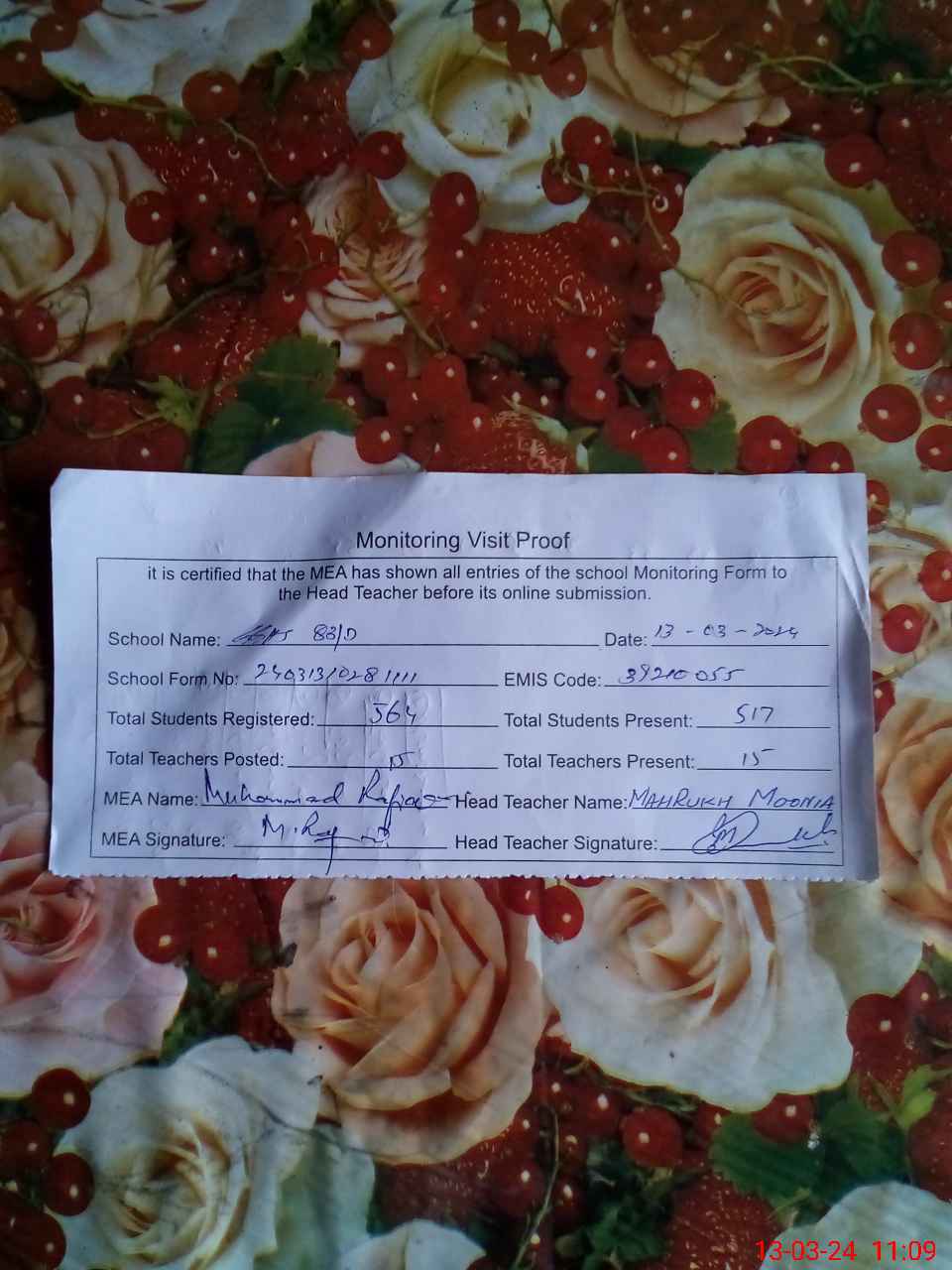 | Certified that this School was Inspected by the Undersigned MEA/DMO Today and the Information Stated Above is as Per Record. | |||||