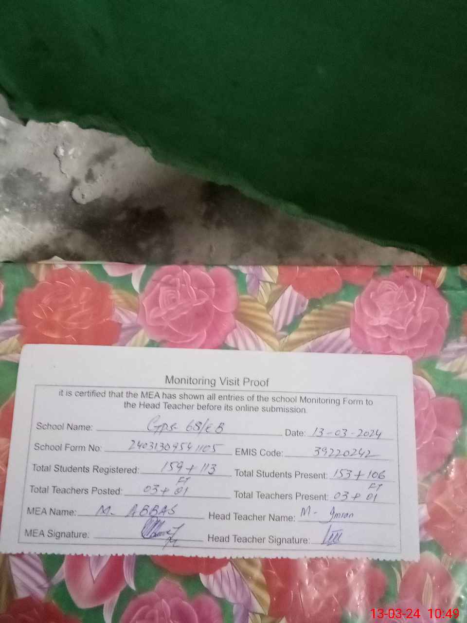 | EMIS Code: 39220242 | Name of School: GPS 68 EB | |||