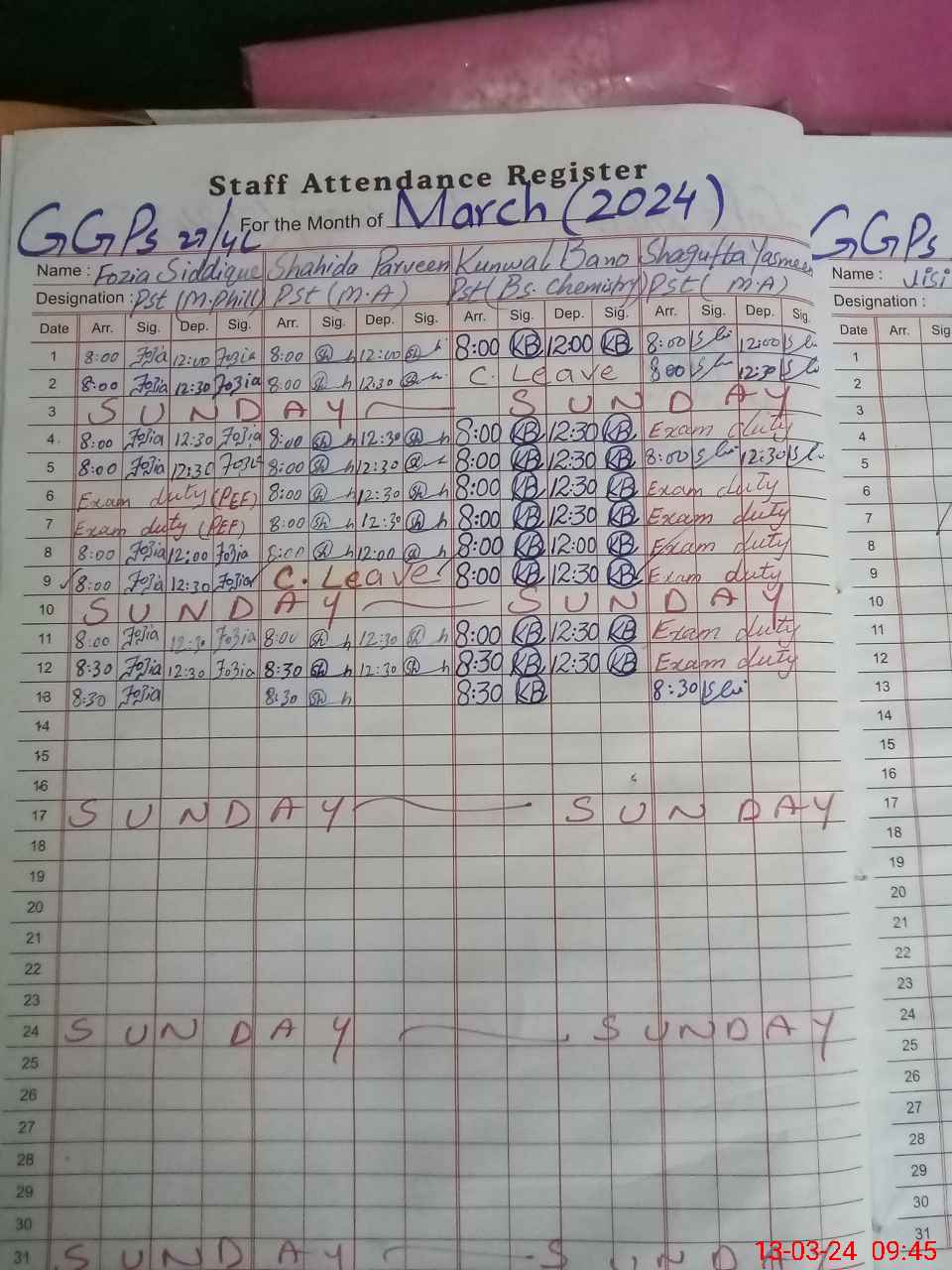 | CNIC | Full Name | Designation | R/C | Absence During Last Calender Month |