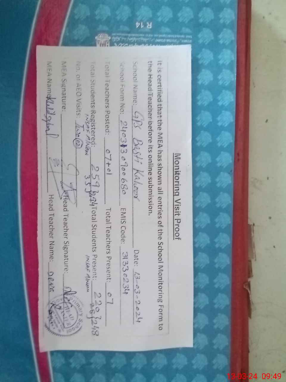 | EMIS Code: 31330234 | Name of School: GPS BASTI KAHOOR KHAN | |||