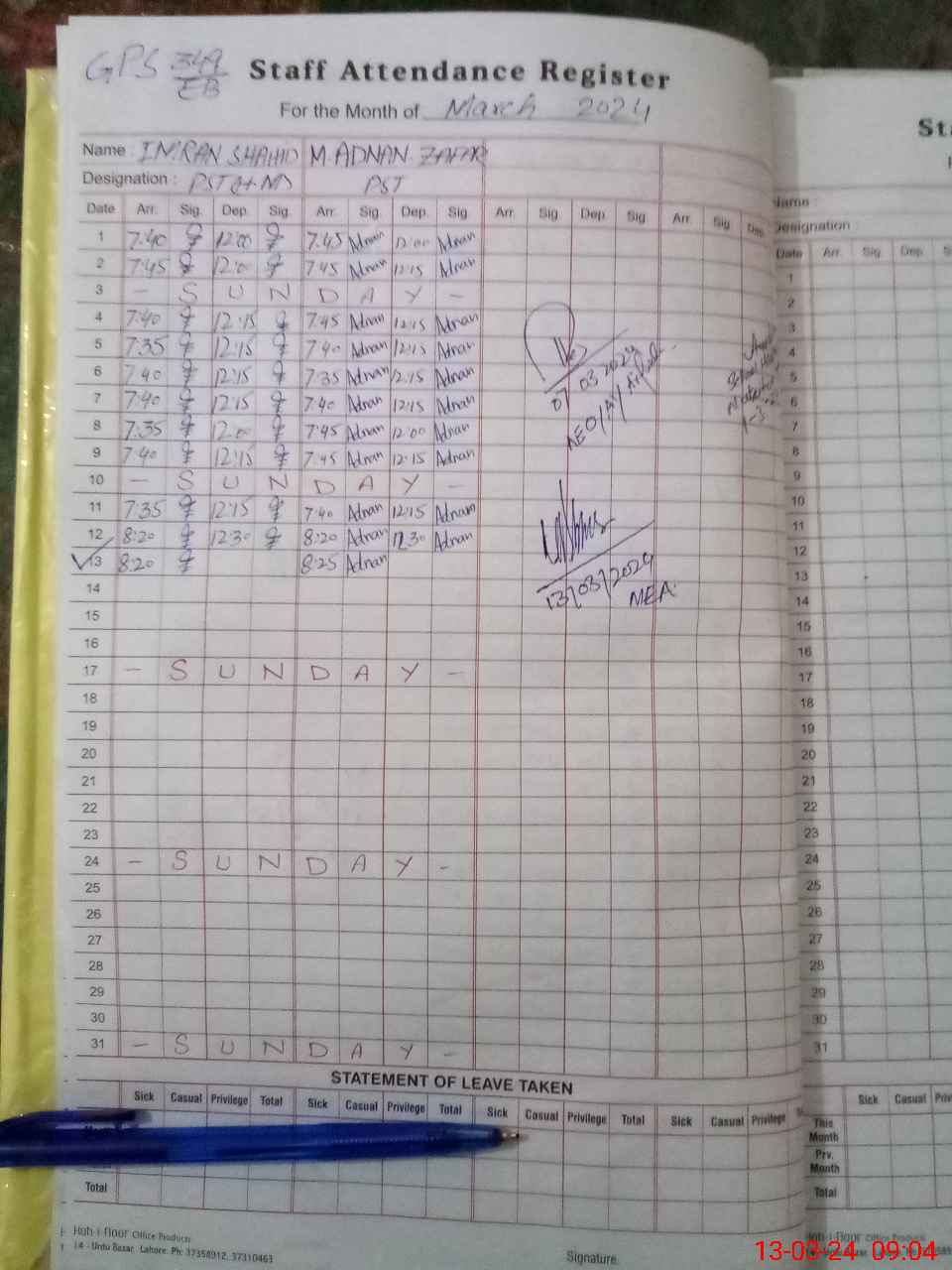 | Name: IM**** SH**** Designation: (School Headmaster's/Headmistress's) PST Phone/Cell Number: 03**** |