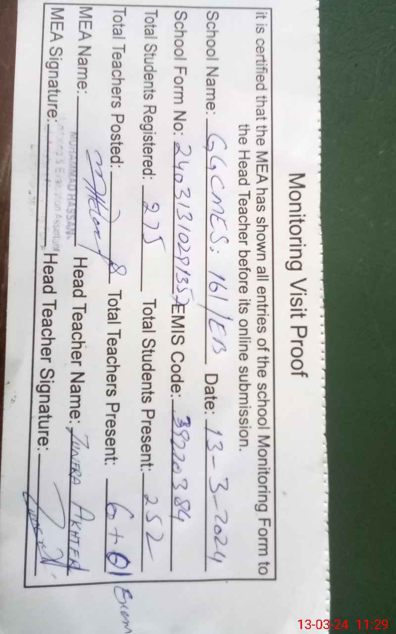 | EMIS Code: 39220384 | Name of School: GGCMES 161 EB ARIFWALA | |||