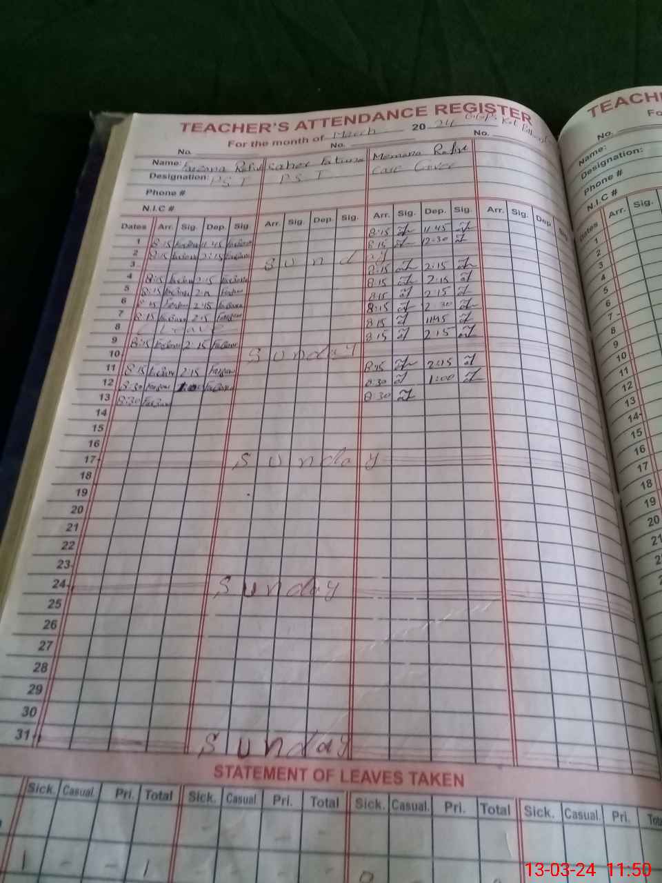 | 31**** | Sa**** Fa**** | PST | Regular | 29 | 0 | 0 | 29 | 0 | 0 | 0 | 0 | 0 | Maternity |