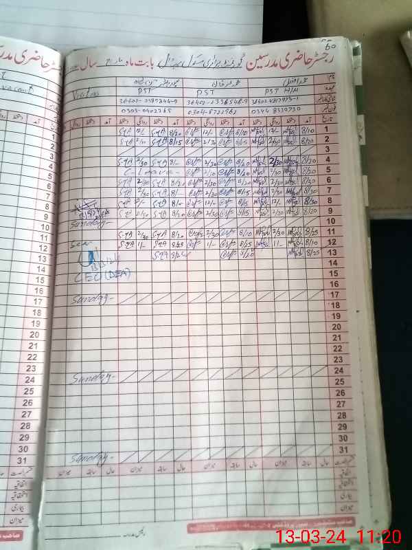| Name: MAF**** Designation: (School Headmaster's/Headmistress's) PST Phone/Cell Number: 03**** |