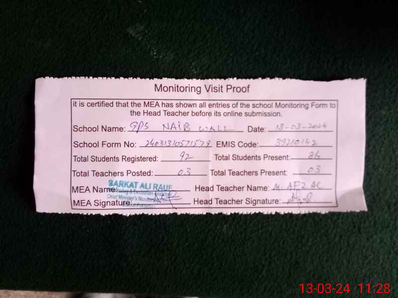 | EMIS Code: 39210142 | Name of School: GPS NAIB WAL | |||