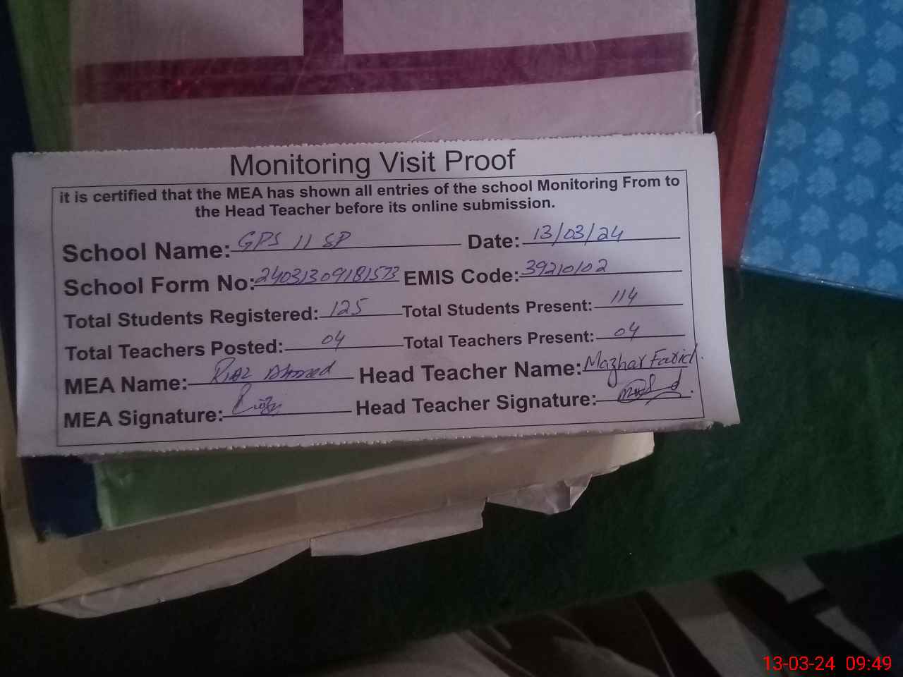 | EMIS Code: 39210102 | Name of School: GPS 11/SP P.O 8/S.P PAKPATTAN | |||