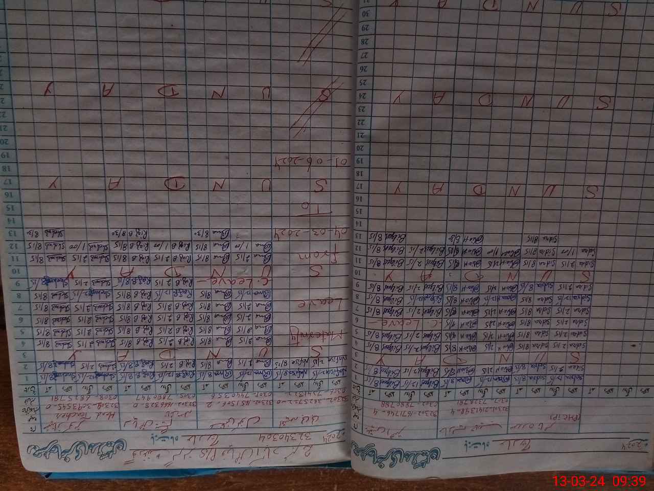| 32**** | Na**** Bi**** | PST | Regular | 0 | 0 | 0 | 0 | 0 | 0 | 0 | 0 | 0 | Maternity |