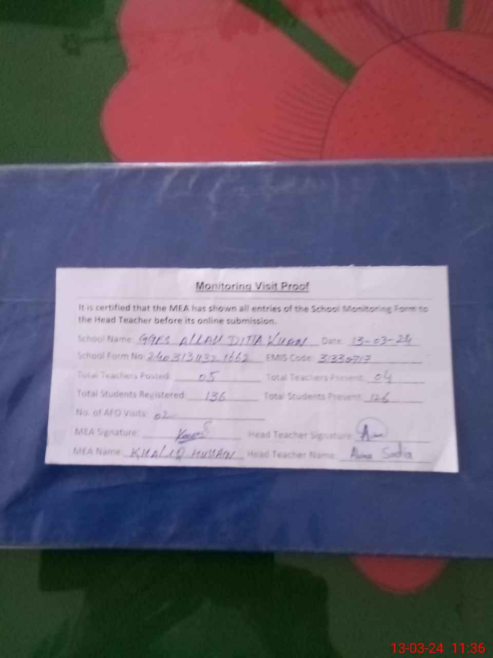 | EMIS Code: 31330717 | Name of School: GGES ALLAH DITTA KHAN | |||