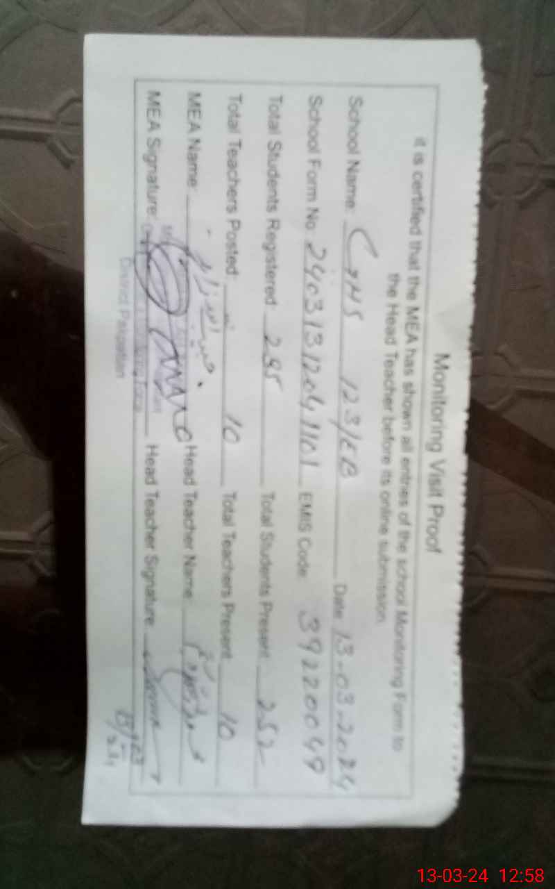 | EMIS Code: 39220049 | Name of School: GHS 123/EB P/O 121/EB ARIF WALA | |||
