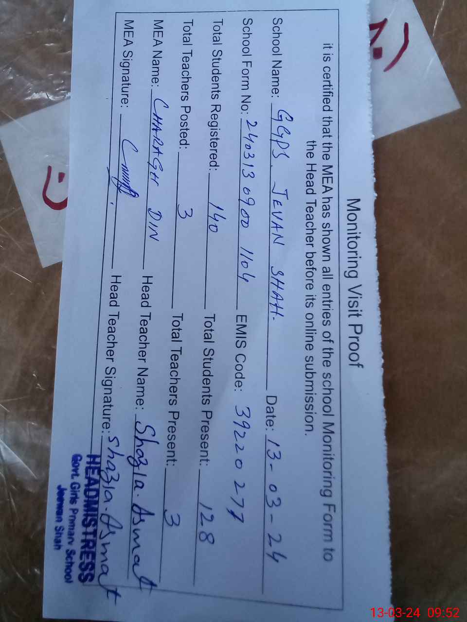 | EMIS Code: 39220277 | Name of School: GGPS JEVAN SHAH | |||
