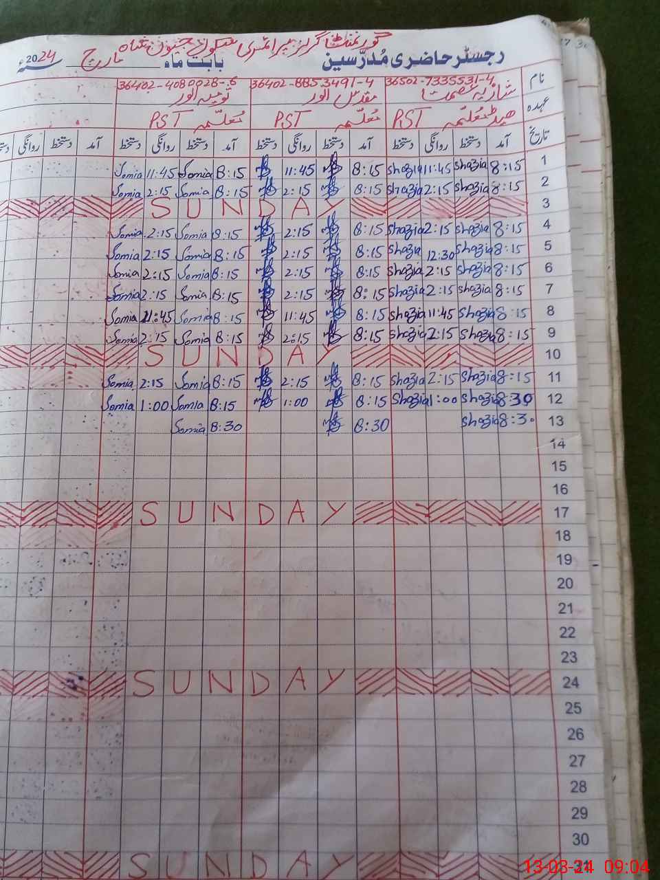 | Name: SH**** AS**** Designation: (School Headmaster's/Headmistress's) PST Phone/Cell Number: 03**** |