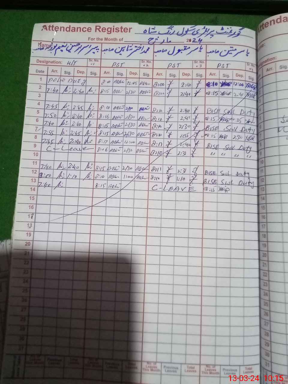 | Leave | Duty | Absent | Maternity | Medical | Ex- Pak |