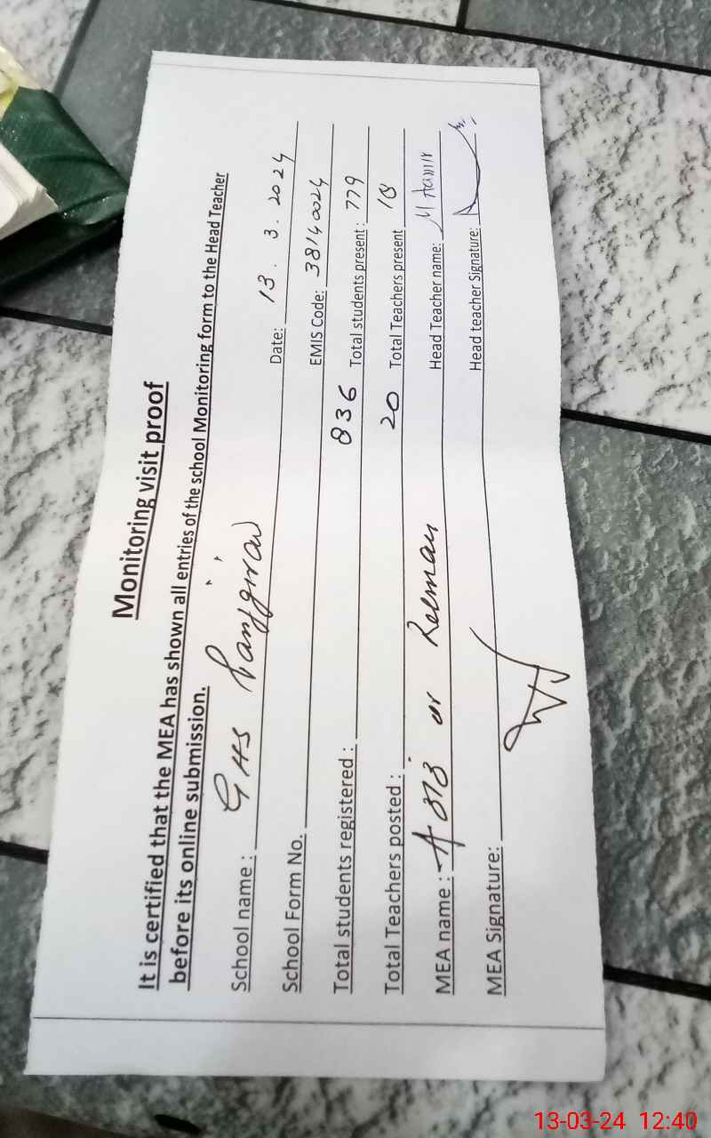 | Attendance Register | Head Teacher | MEA with School | Visit Proof |