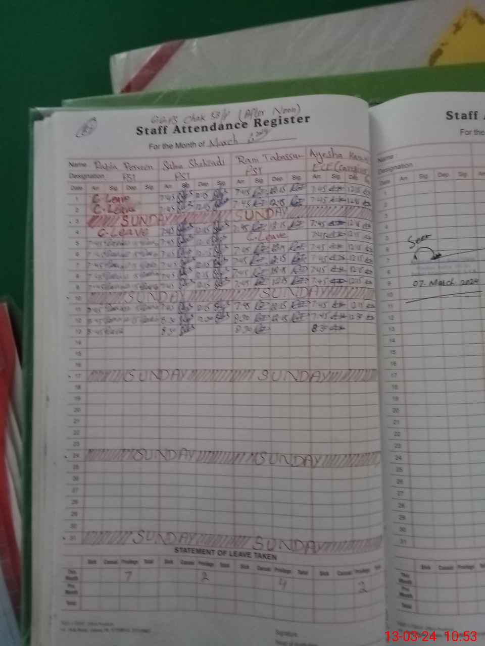 | Leave | Duty | Absent | Maternity | Medical | Ex- Pak |