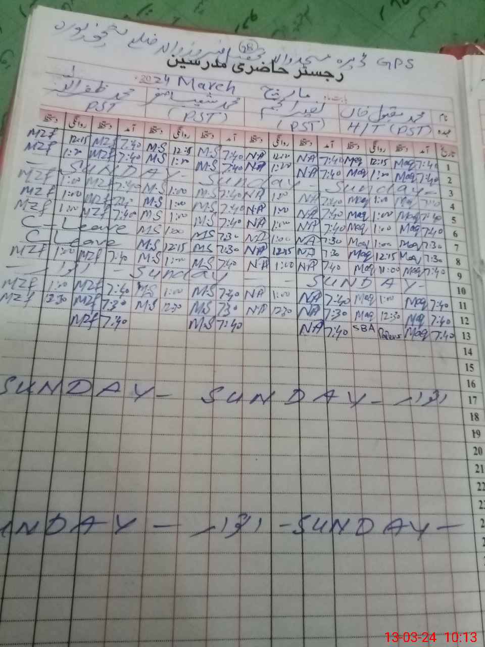 | CNIC | Full Name | Designation | R/C | Absence During Last Calender Month |