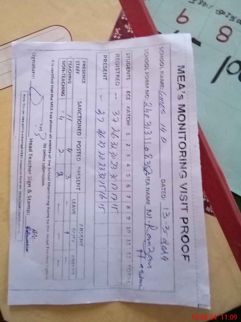 | Certified that this School was Inspected by the Undersigned MEA/DMO Today and the Information Stated Above is as Per Record. | |||||