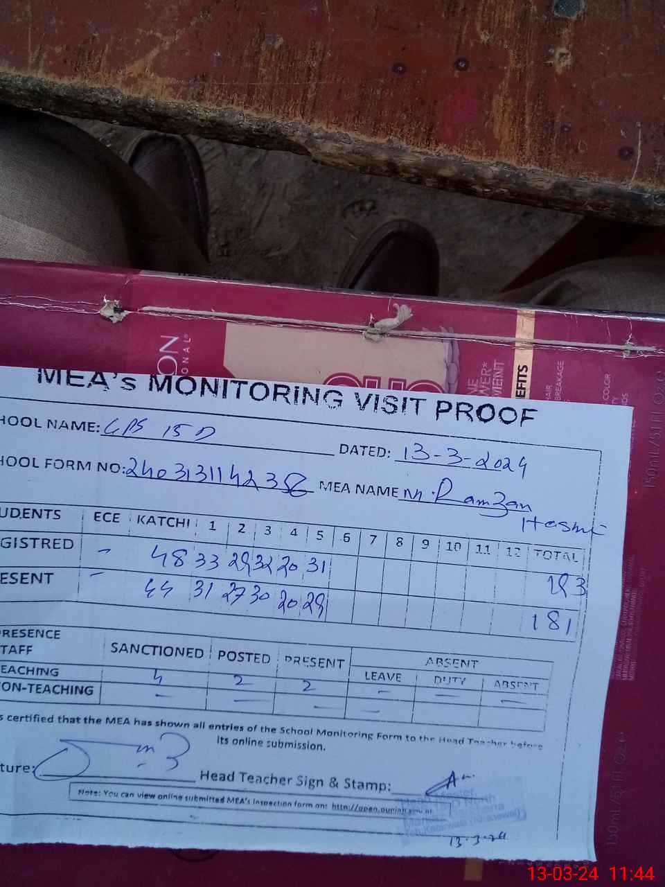 | EMIS Code: 36410289 | Name of School: GPS 15/D NORTH, P/O 25 PUL, ABDUL HAKIM | |||