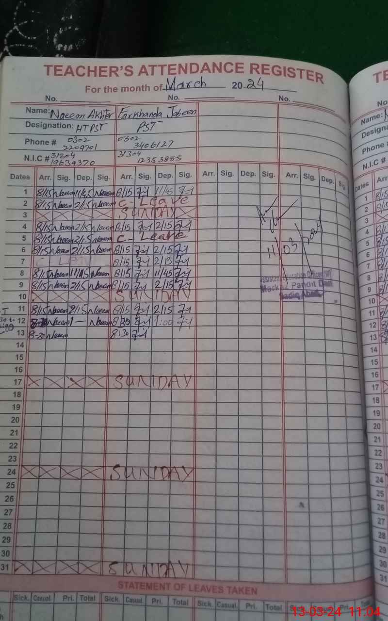 | Name: Ha**** Sh**** Sa**** Designation: (School Headmaster's/Headmistress's) PST Phone/Cell Number: 03**** |