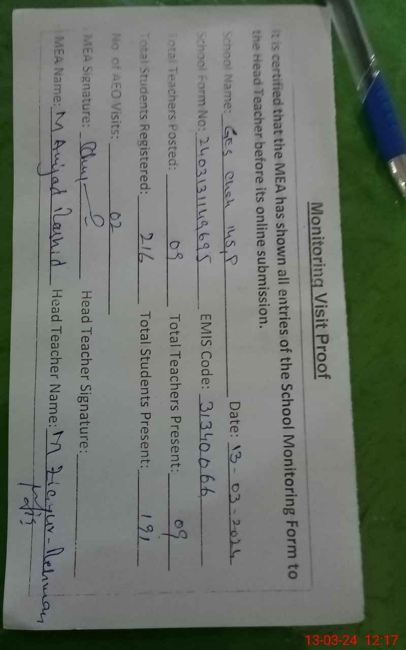 | EMIS Code: 31340066 | Name of School: GES CHAK NO 145/P | |||