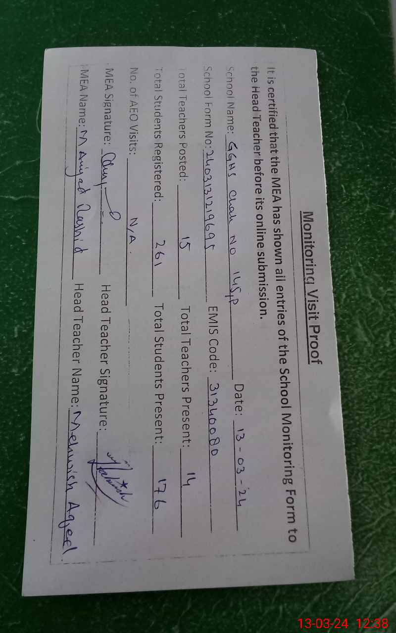 | EMIS Code: 31340080 | Name of School: GGHS CHAK 145/P | |||