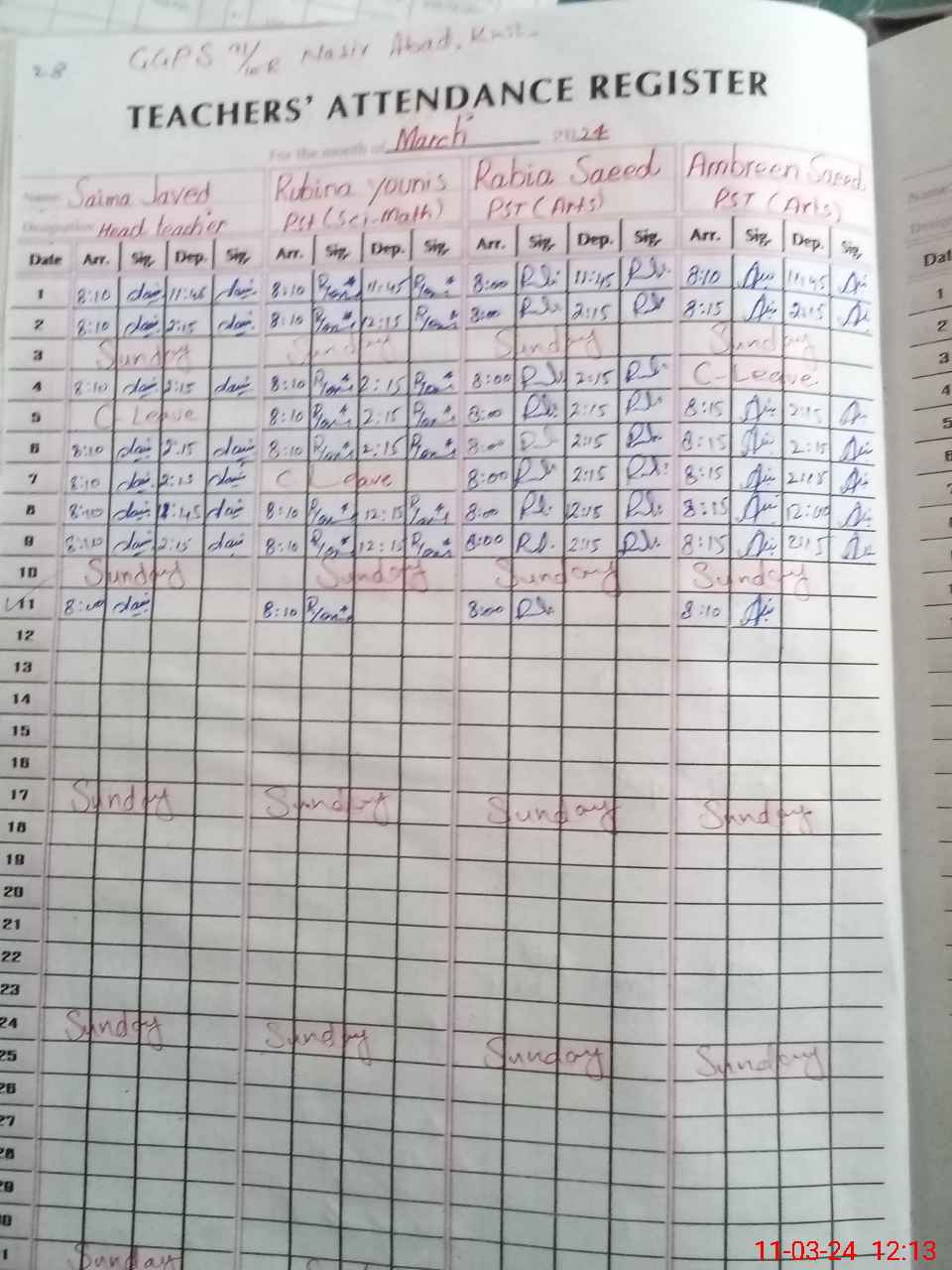 | CNIC | Full Name | Designation | R/C | Absence During Last Calender Month |