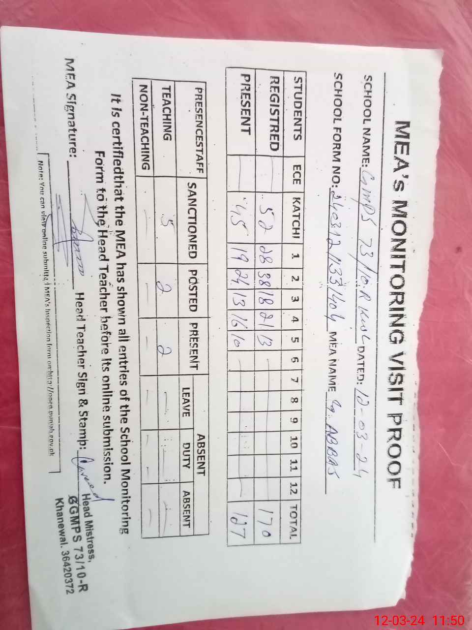 | EMIS Code: 36420372 | Name of School: GMPS 73/10-R, KHANEWAL | |||