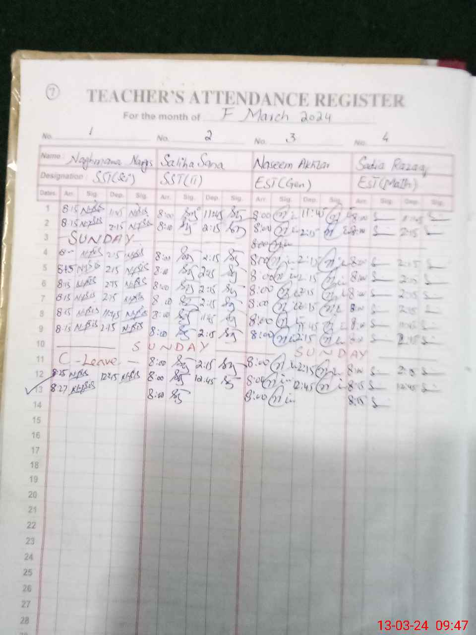 | Remarks (Use Separate Page if Required): PST Robina posted in this school but her name is not showing in mea tab list During random attendance of 15 students listed students are promotted and left the school | |||||