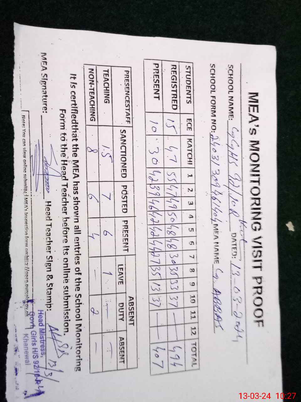| EMIS Code: 36420047 | Name of School: GGHS 92/10-R, KHANEWAL | |||
