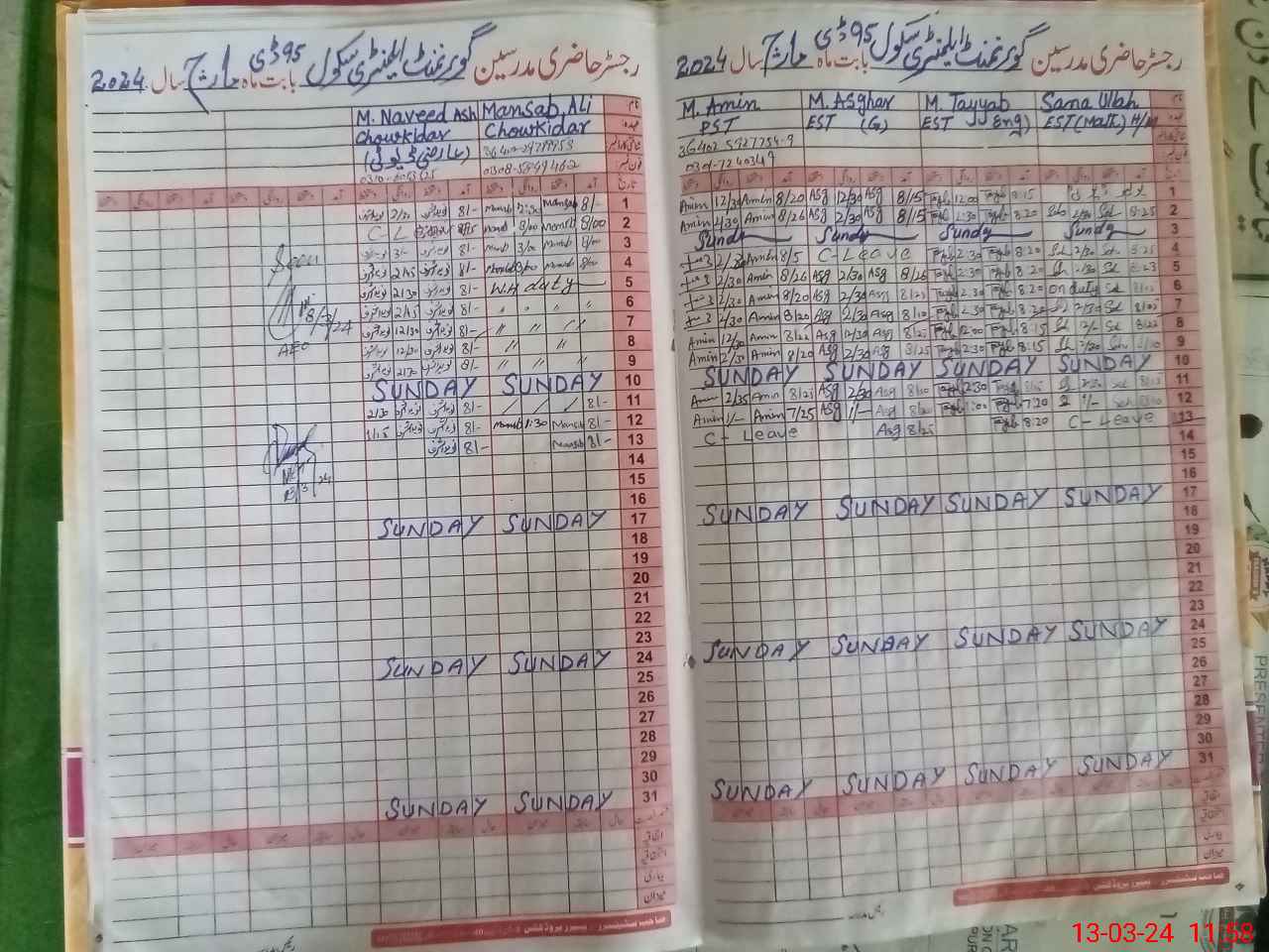 | Remarks (Use Separate Page if Required): Chokidar Muhammad Naveed present additional duty at this school from GES no 2 Arif wala Books record farm D 4 not complete | |||||