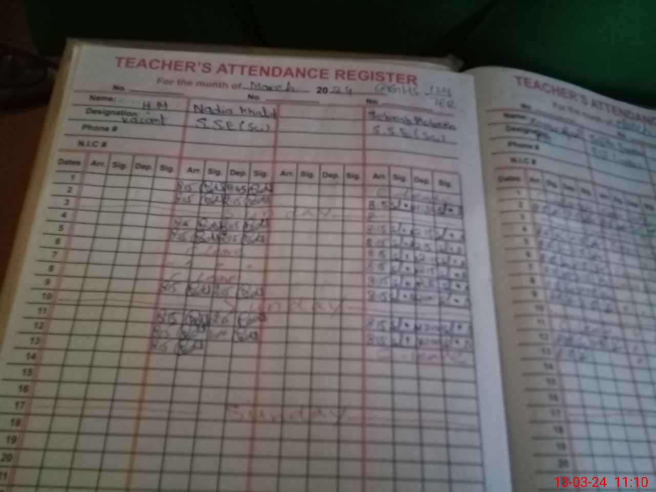 | Name: Sh**** Mu**** Designation: (School Headmaster's/Headmistress's) SST Phone/Cell Number: 03**** |