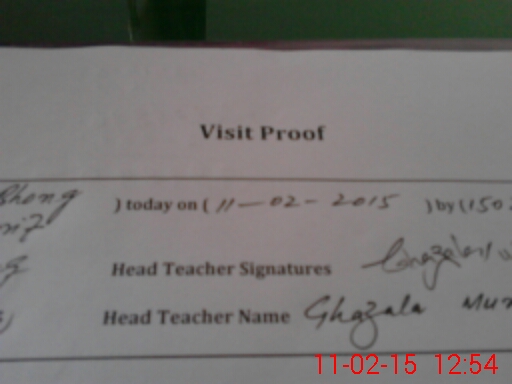 | School Visited by School Health & Nutrition Supervisor (No. of Visits) | 1 | Name1: | Muhammad Kamram | Name2: | Nil |