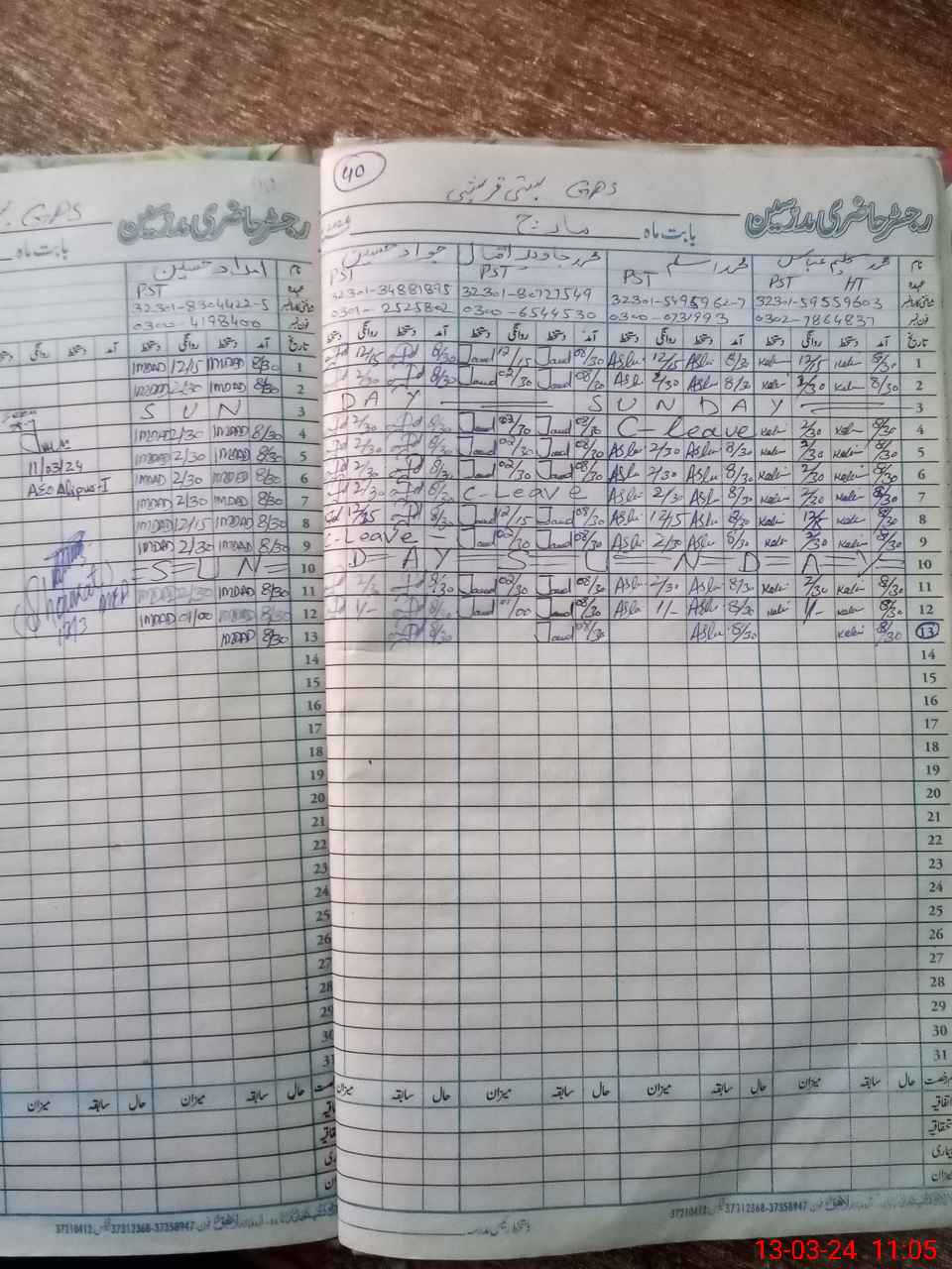 | CNIC | Full Name | Designation | R/C | Absence During Last Calender Month |
