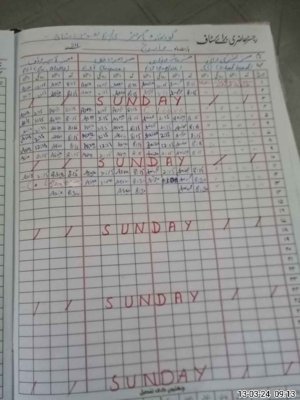 | 35**** | Bu**** Ra**** | 1 | 1 | 3 | 0 | 0 | 0 | 0 | 0 | 0 | 1 | Exam Duty | |