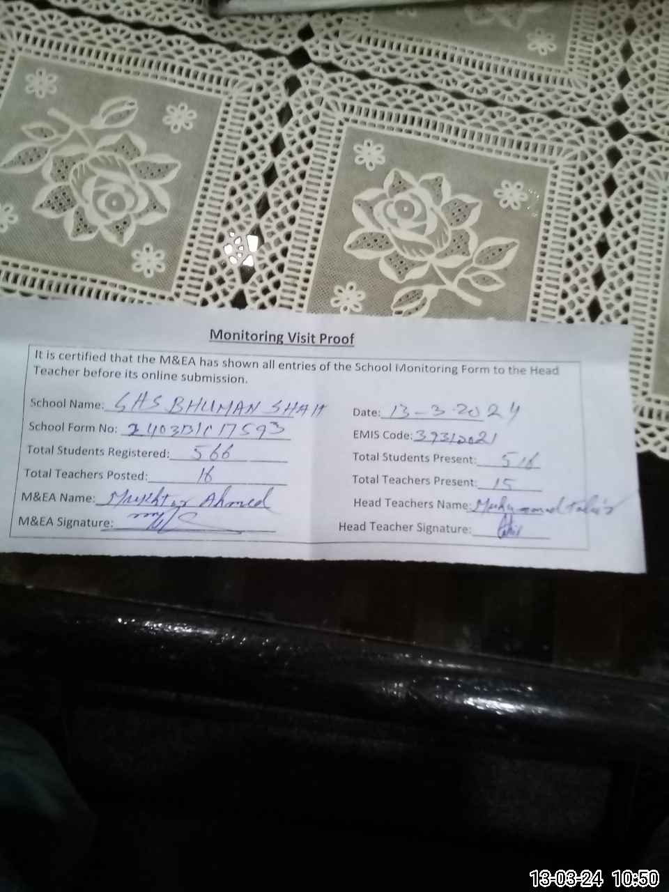 | EMIS Code: 39310021 | Name of School: GHS BHUMAN SHAH | |||