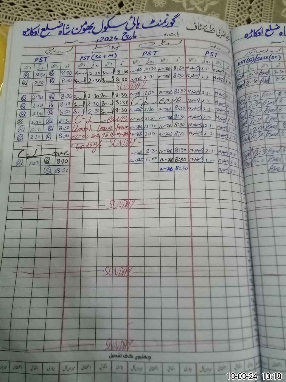 | 35**** | Mu**** Mu**** Ah**** | 1 | 1 | 10 | 0 | 0 | 0 | 0 | 0 | 0 | 1 | Exam Duty | |
