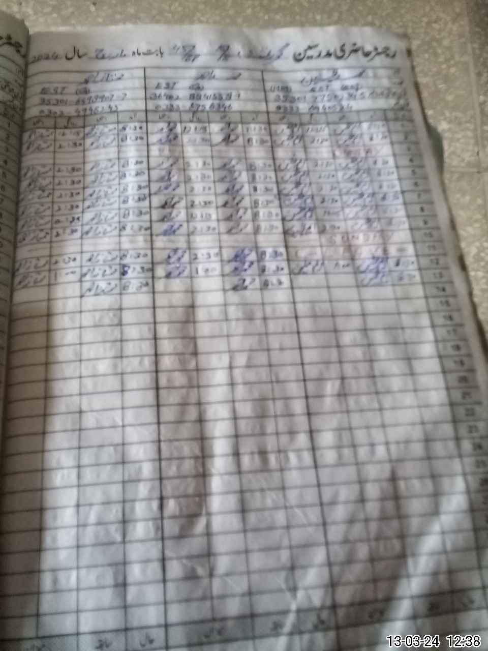 | CNIC | Full Name | Designation | R/C | Absence During Last Calender Month |
